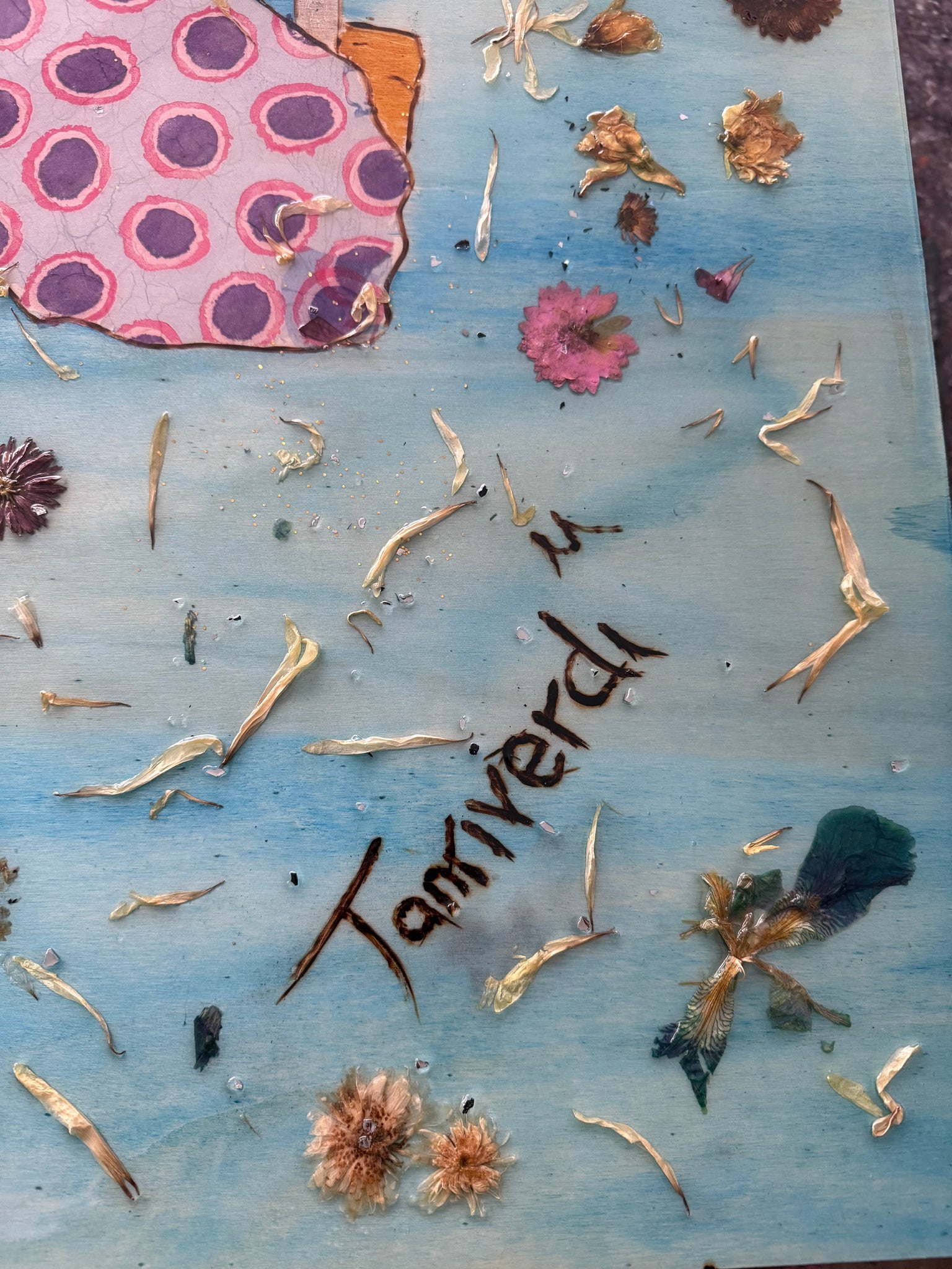 • Technique: Pyrography, pressed flowers, pigments, epoxy resin
